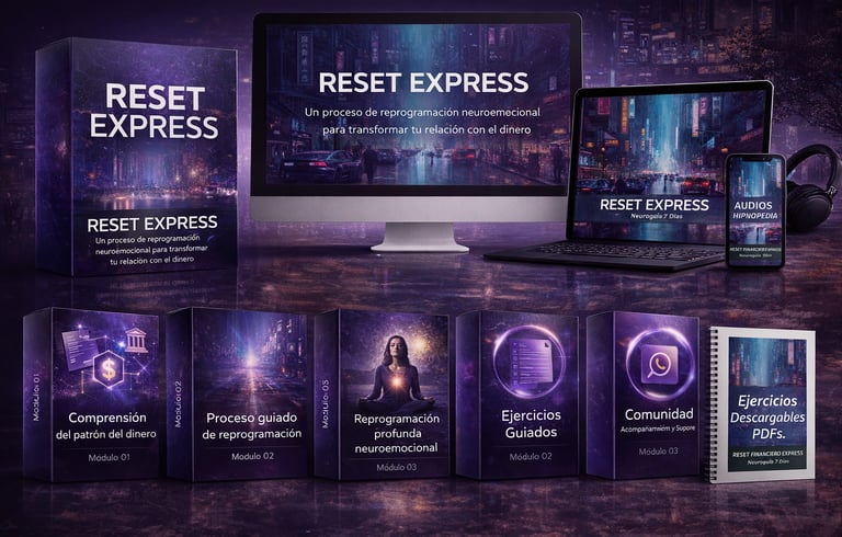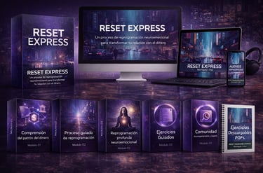 Reset Financiero Express es una guía práctica de reprogramación mental que te ayuda a desbloquear creencias limitantes y activar patrones de prosperidad en solo días.
